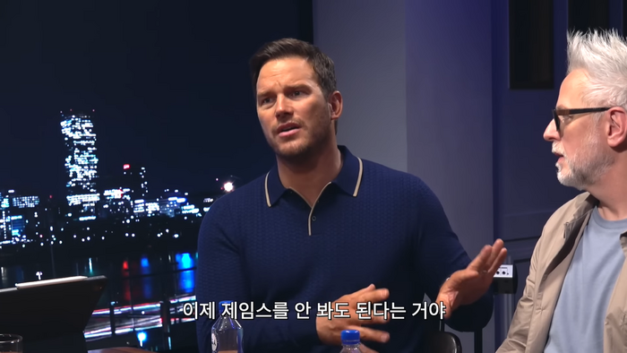 제임스 건 감독은 “지금 이 순간이 최고의 순간이다. 크리스에게도 최고의 순간”이라며 텐션을 끌어올렸다. 그는 크리스 프랫을 가리키며 “얘 녹화 전에 엄청 긴장했다. 너희 만난다고 해서 계속 토했다. 촬영장 전부에 토했다”라고 말했다.