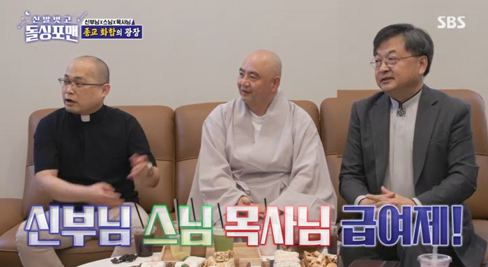 2일 방송된 SBS ‘신발 벗고 돌싱포맨’에는 ‘종교 대화합의 날’로 김진 목사, 성진 스님, 하성용 신부 성직자가 출연했다.