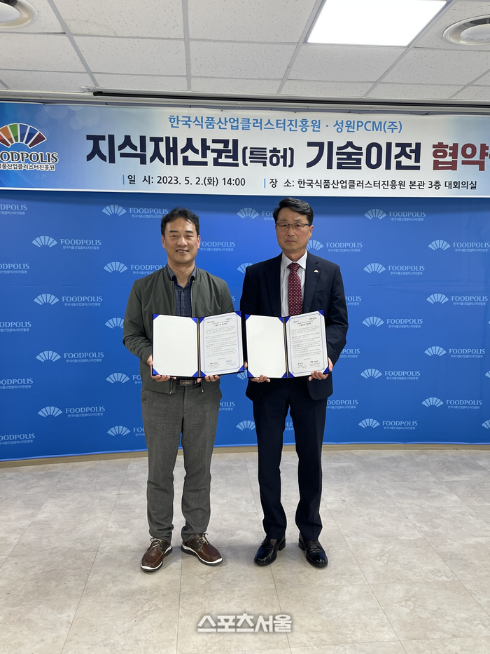 [스포츠서울ㅣ익산=김기원 기자] 한국식품산업클러스터진흥원(이사장 김영재, 이하 ‘식품진흥원’)과 성원PCM㈜은 5월 2일 ‘백도라지 숙성물을 포함하는 호흡기 질환 예방 또는 치료용 조성물’ 관련 특허 기술이전 협약을 체결했다고 밝혔다.