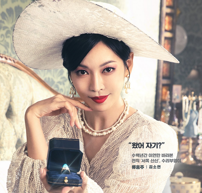 김소연은 경성 최고급 요릿집 묘연각의 주연이자, 어마어마한 괴력을 가진 전직 서쪽 산신 류홍주로 분한다. 김소연은 “홍주가 예쁜 걸 좋아하고 치장하는 걸 좋아하는 캐릭터인데 판타지라는 장르 특성을 살려서 조금 더 화려하게 꾸몄다”라고 설명했다.
