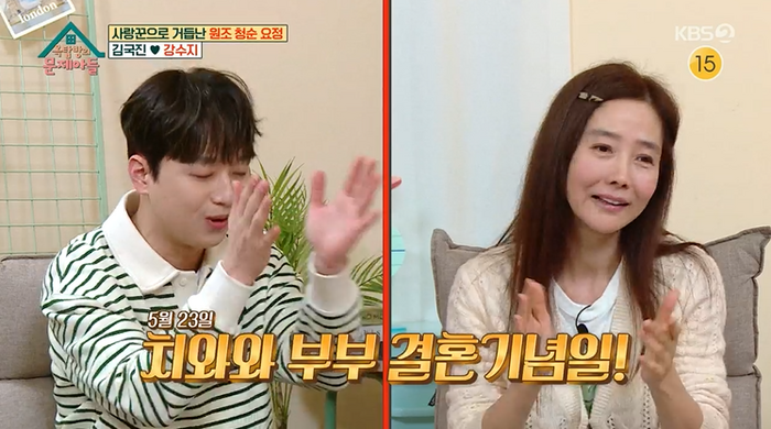 방송인 김국진가 결혼한 지 6년 차가 된 강수지는 결혼기념일을 앞두고 있다. 그는 “둘 다 이벤트를 좋아하지 않는다. 밥 먹는다 외식하고. 결혼하고 나서는 선물을 받지 않았다. 내가 갖고 싶은 게 없는 사람이다. 꽃이나 화초를 좋아한다”고 이야기했다.