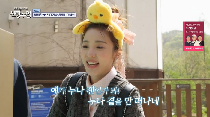 두 사람은 펭귄을 구경했다. 펭귄이 한참 산다라박 앞에서 헤엄치는 모습을 본 박태환은 “얘도 누나 좋아하네”라고 심쿵 멘트를 날렸다. 패널들이 깜짝 놀라자 박태환은 귀까지 빨개져 이목을 집중시켰다.