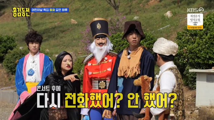 4일 방송된 KBS2 ‘홍김동전’에는 홍진경, 김숙, 조세호, 주우재, 그룹 2PM 우영이 어린이날 특집으로 동화 속 장면을 재연하는 이야기가 그려졌다.