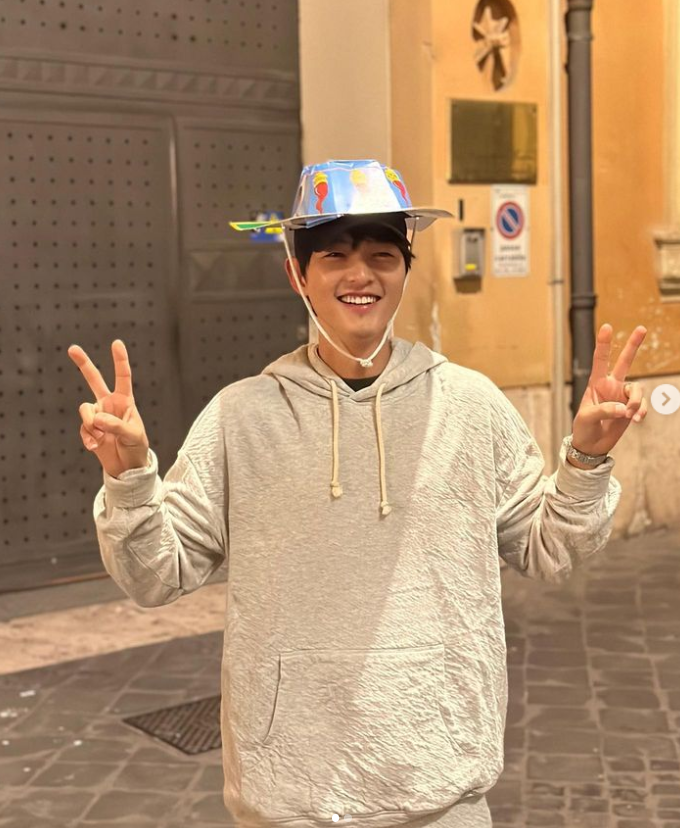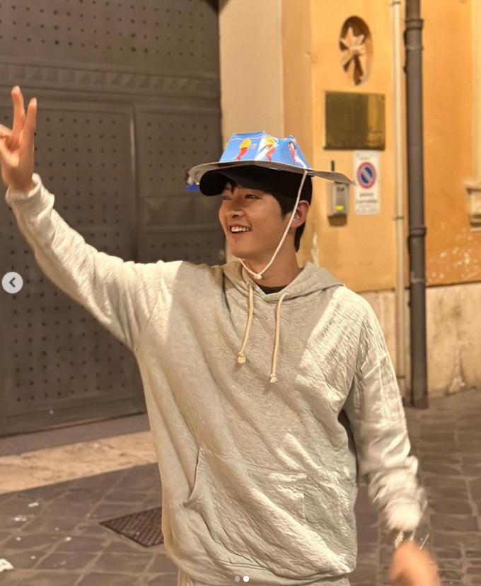 현재 이탈리아 나폴리에 머무르고 있는 것으로 보이는 송중기는 캐주얼한 후드티를 입고 브이를 하며 천진난만한 미소를 짓고 있다. 1985년생이라는 나이가 믿기지 않는 동안 비주얼은 마치 그의 신인 시절을 연상케한다.