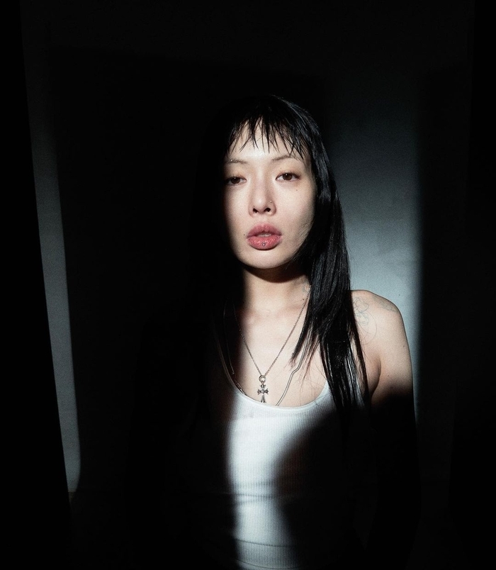 공개한 사진에서 현아는 이마를 드러내는 짧은 앞머리와 층을 낸 긴 머리를 선보였다. 또한 흰색의 민소매 셔츠만을 입고 전면을 응시해 시선을 사로잡았다.