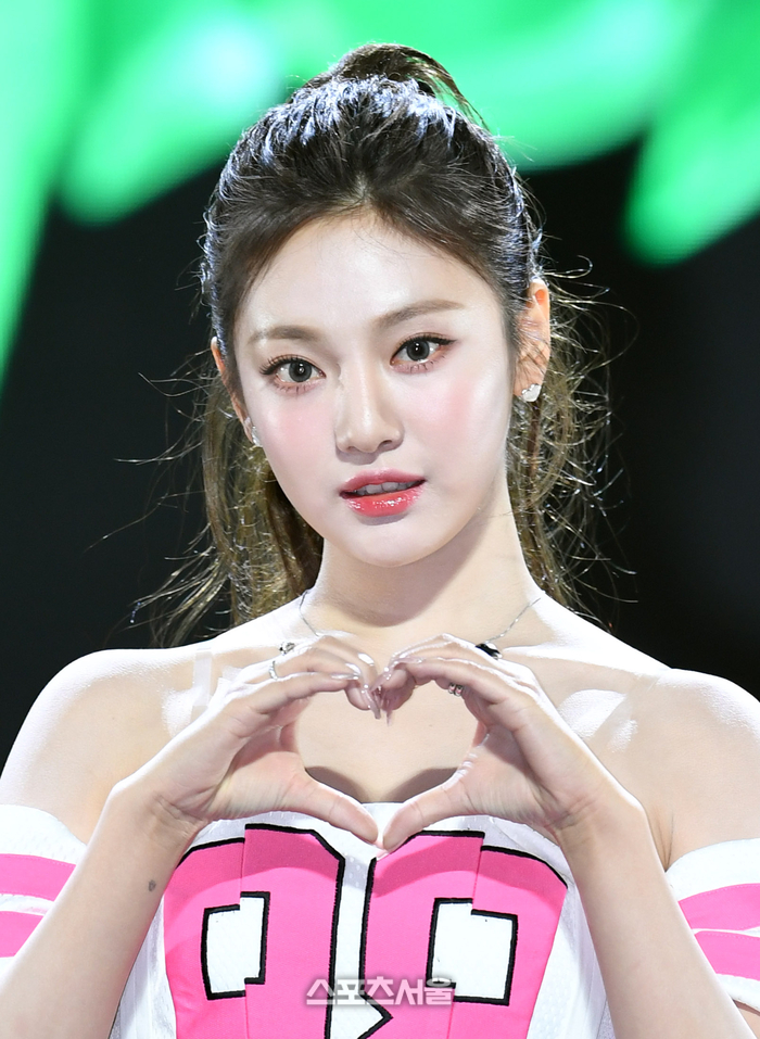 에스파 닝닝이 8일 서울 강남구 코엑스 오디토리움에서 진행된 세 번째 미니앨범 ‘마이 월드(MY WORLD)’ 발매 기념 기자간담회에서 취재진을 향해 포즈를 취하고 있다. 2023. 5. 8.