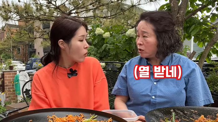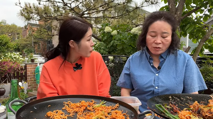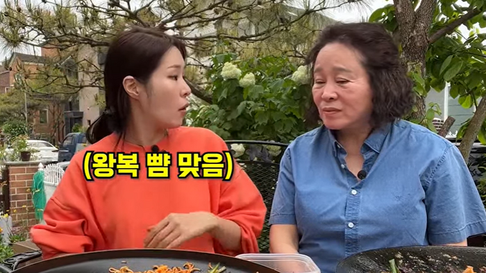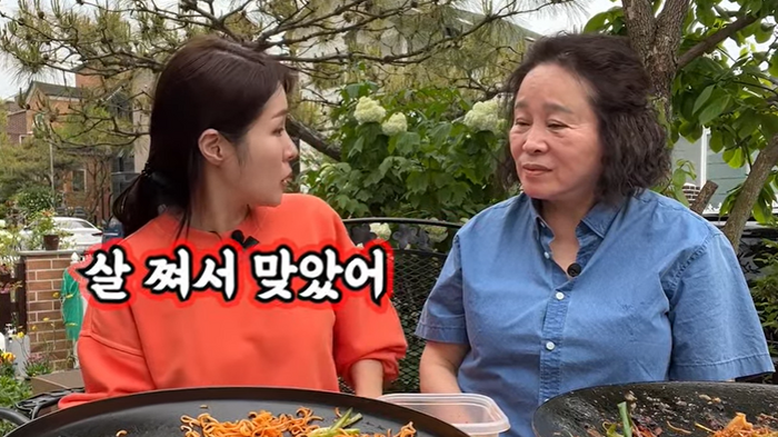 영상 속 미자, 전성애 모녀는 비빔면에 대패 삼겹살을 먹었다.
