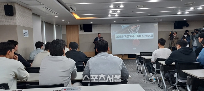9일 서울 KBL센터 5층 교육장에서 FA 설명회가 열렸다. 47명의 FA 선수 중 KGC인삼공사 문성곤, KT 양홍석, SK 최성원, 가스공사 정효근 이대헌, LG 김준일 등 16명의 선수가 참석했다. KBL 김성태 운영팀장이 40분 가량 FA 제도에 대한 설명을 하며 선수들의 이해를 도왔다.