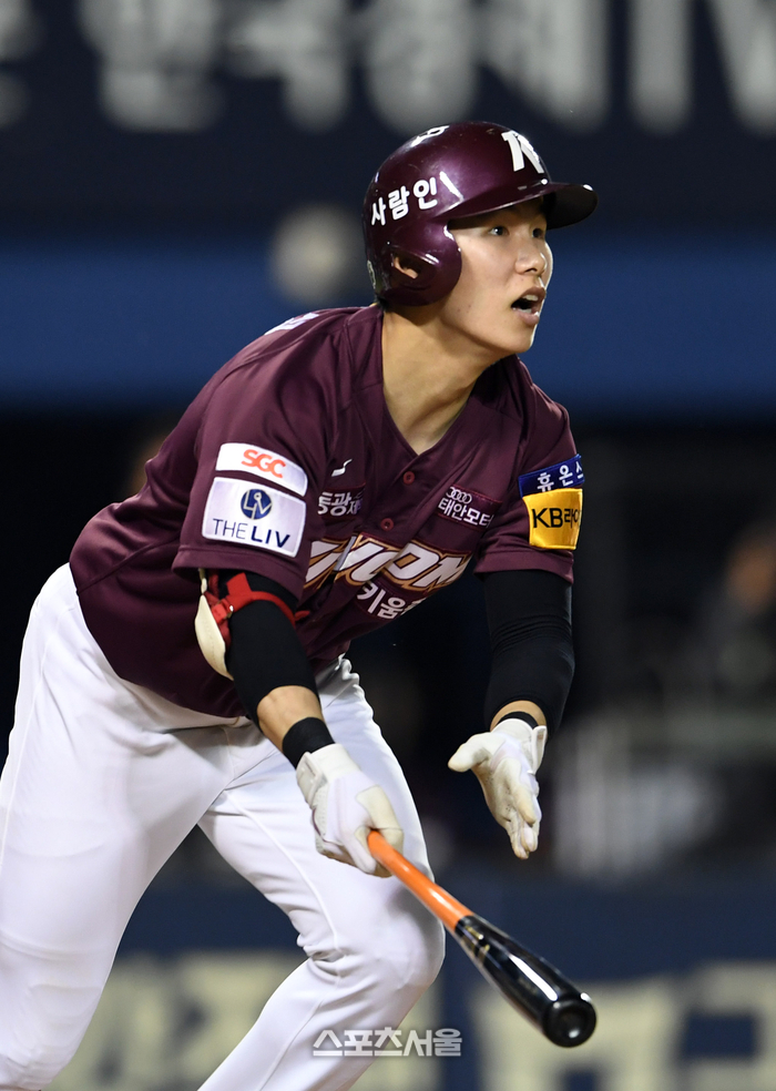 키움 히어로즈 김혜성이 10일 잠실구장에서 열린 2023 KBO리그 LG 트윈스와 경기 7회초 1사 1-2루 LG 최성훈을 상대로 1타점 적시타를 치고 있다. 2023. 5. 10.