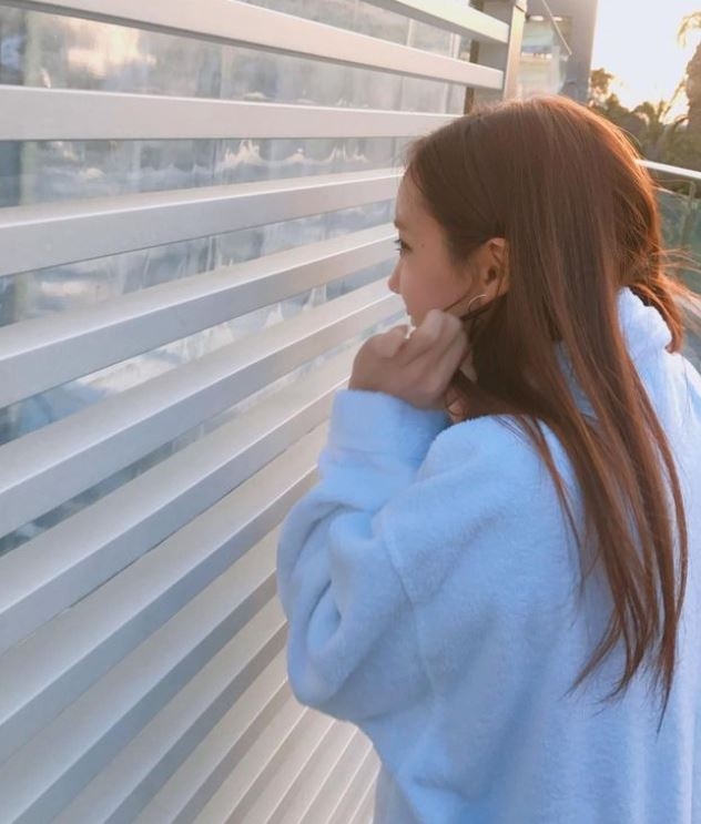 다른 사진에는 뒤태를 드러내고 있고, 가운을 입고 창 틈을 보는 귀여운 매력도 엿보인다.