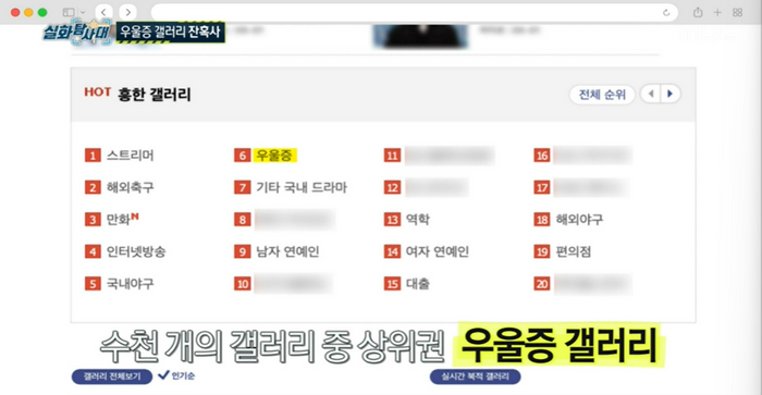 [스포츠서울 | 김지윤기자] 인터넷 커뮤니티 ‘우울증 갤러리’의 충격적인 실태가 밝혀졌다.