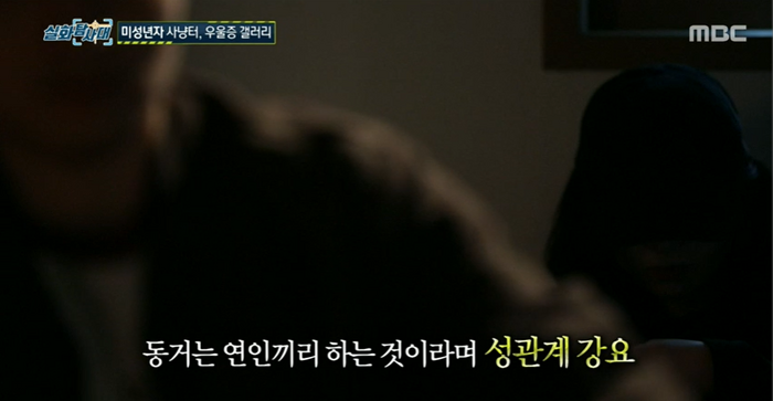 B 씨는 “집을 나와서 사정을 설명하고, 10만 원씩 내면서 생활하기로 했다. 한 달정도 지냈다. 당시 성관계를 할 생각이 없다고 했는데 나를 계속 설득시켰다. 그러고 나서 억지로 만졌다. ‘동거는 연인끼리 하는 것’이라고 강요했다. 성관계를 맺은 후에도 계속 제 몸을 만지길래 거부 의사를 표현했지만 엄청 두려웠다”고 말해 안타까움을 자아냈다.