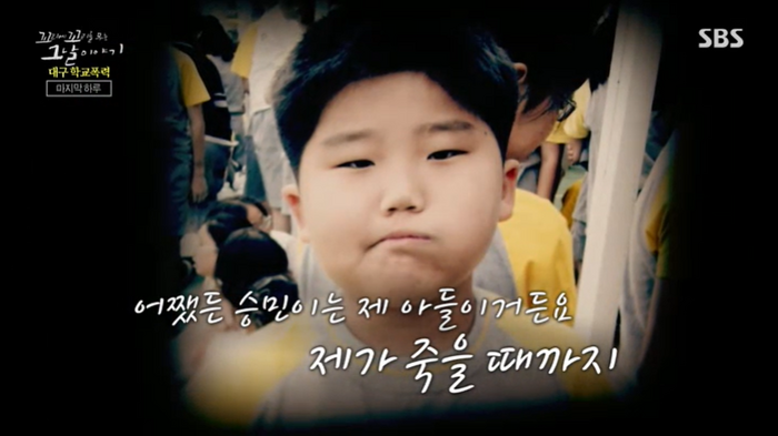 승민 군의 어머니는 “죽지 못해 사는 시간이었다. 형, 아버지, 엄마의 죄책감은 말할 수 없다. 중학교 교사인 내가 아이를 못 지켰으니까”라고 자책하며 눈물을 흘려 더 안타까움을 자아냈다.