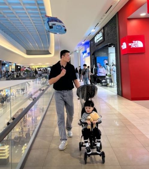 12일 정다운은 자신의 채널 스토리에 사진을 게재했다. 세 살 아들을 유모차에 태우고 쇼핑몰 구경에 나선 모습이다.