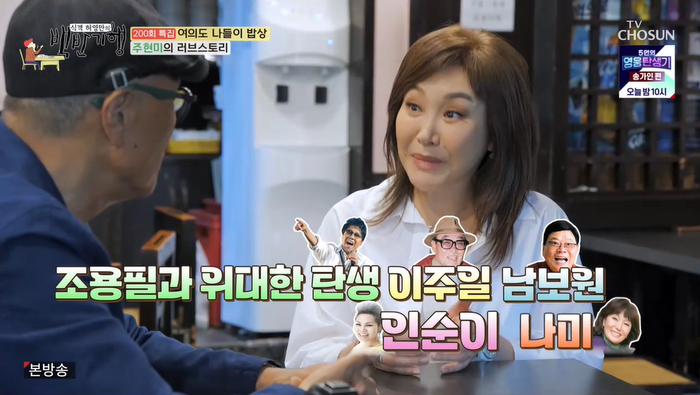 주현미의 남편은 가수 조용필의 밴드 기타리스트 임동신. 주현미는 “공연 때 만났다. 미주 순회공연을 했다. 공연을 40일간 갔다. 같이 잡먹고 음악 이야기하면서 친해졌다. 조용필 선배님이 눈치챌까 봐 엄청 눈치 봤다”며 “나중에 결혼하고 나서 그러시더라. ‘너네들 그런 거 우리 다 알았어’”라며 웃었다.