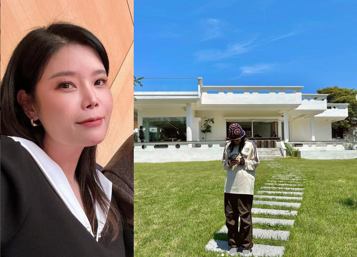 다른 사진에는 린의 제주도 집이 담겼다. 린은 새하얀 집 앞 잔디밭에 서있다.