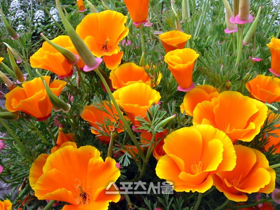 금영화는 캘리포니아 양귀비라고도 하며, 높이 30~50cm로 5월부터 최장 8월까지 꽃을 볼 수 있는 경관식물이다.
