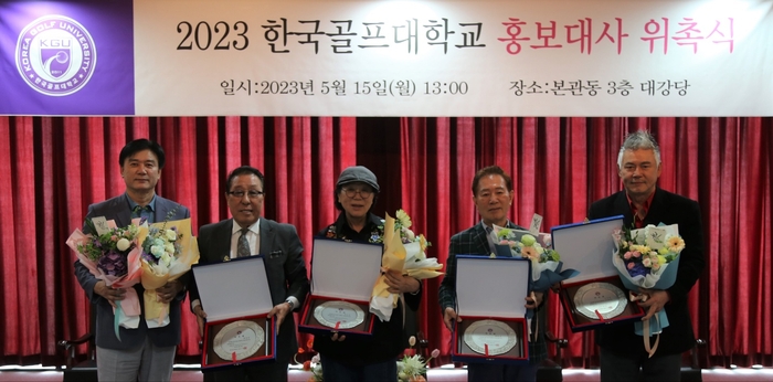 이현수 한국골프대학교 총장은 “바쁘신 중에도 대학 홍보대사를 흔쾌히 수락해주신 네 분께 진심으로 감사드린다”며 위촉패를 전달했고 “4차 산업혁명 시대의 인문·체육 지식으로 채비된 골프 분야 인재임을 품질보증하는 홍보대사 활동을 해주시기 바란다”고 당부했다.