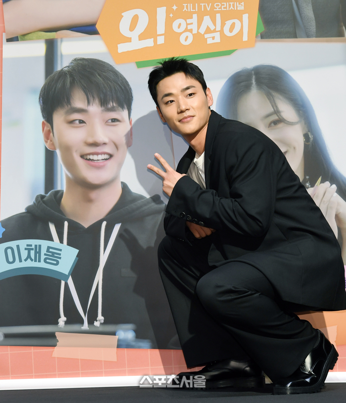 배우 이민재가 15일 서울 라마다서울신도림호텔에서 진행된 지니 TV 오리지널 ‘오! 영심이’ 제작발표회에서 취재진을 향해 포즈를 취하고 있다.