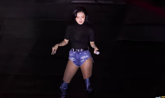 환호하는 팬들 앞에서 주저앉는 춤을 추며 분위기를 끌어올린 화사는 무대 도중 독특한 퍼포먼스를 했다. 화사가 재차 다리를 벌리고 주저앉자 팬들이 소리를 질렀고, 화사는 손가락에 침을 발라 다리 사이를 훑는 동작을 하며 일어섰다.