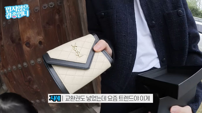 영상 속 이지혜는 유튜브 스태프 2명에게 명품 지갑을 선물했다.