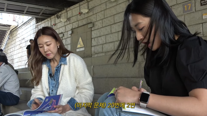 두 사람은 청계천에 앉아 문제를 풀었다. 문제를 푸는 동안 한혜진은 “진짜 잘할 거다. 다 맞춰야지. 진짜로 너무 쉽다”며 자신감을 보였다.