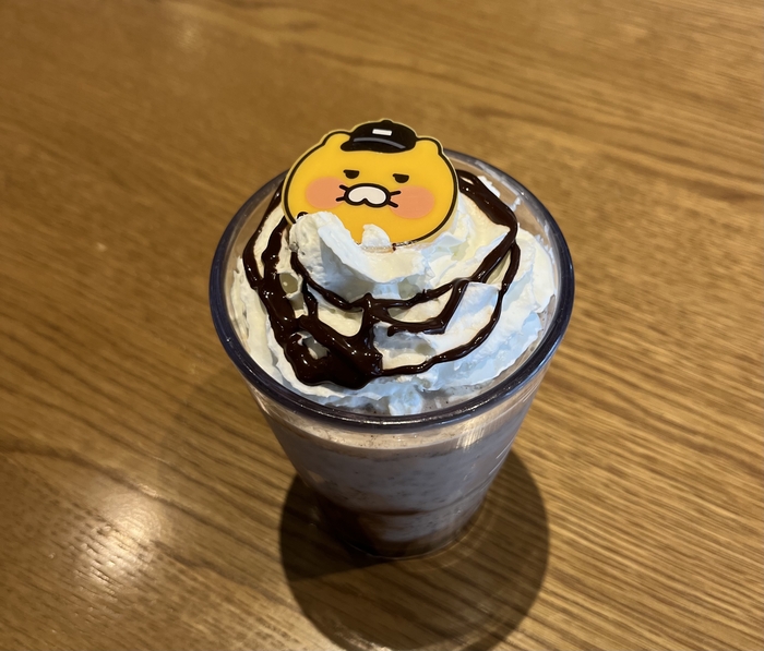 프라푸치노 위에 올라온 춘식이는 스타벅스 바리스타의 차림을 한 채 수줍게 웃고 있었다. 소비자의 사랑을 받는 춘식이가 어느새 스타벅스까지 진출해 있었다.