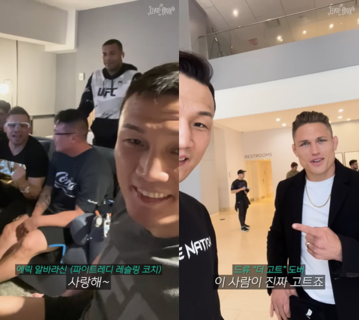 함께 모여 수다를 떠는 장면에서는 파이트레디 레슬링 코치 에릭 알바라신(39)도 함께 했다. 그는 지난해 미들급 파이터 파울로 코스타(32·브라질)와 함께 하승진에게 “하승진, 겁쟁이, 가자, 싸우자”라고 한국어로 도발해 화제를 모았다. 알바라신은 “사랑해”라고 유쾌하게 인사했다.