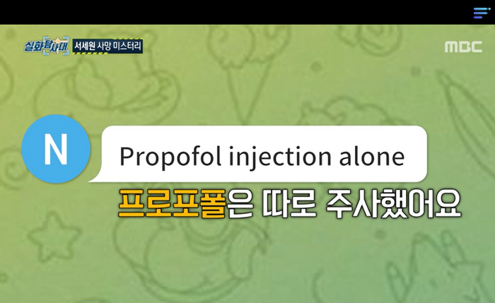 간호사는 “프로포폴을 주사했다”며 비타민 수액을 투역한 후 주사기를 이용해 프로포폴을 따로 주사했다고 밝혔다. 이어 간호사는 “서 씨가 나에게 가져왔다. 그것은 이미 개봉되어 있었다”고 전했다.