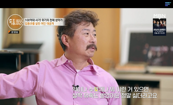 그런 김동규는 “유혹도 받았다. 약이나 수면제나 뭐 이런 거 있으면 살짝 유혹도 받았다. 정말 싫더라. 그 생각만 하면 아주 그냥”이라고 얼굴을 찌푸렸다.