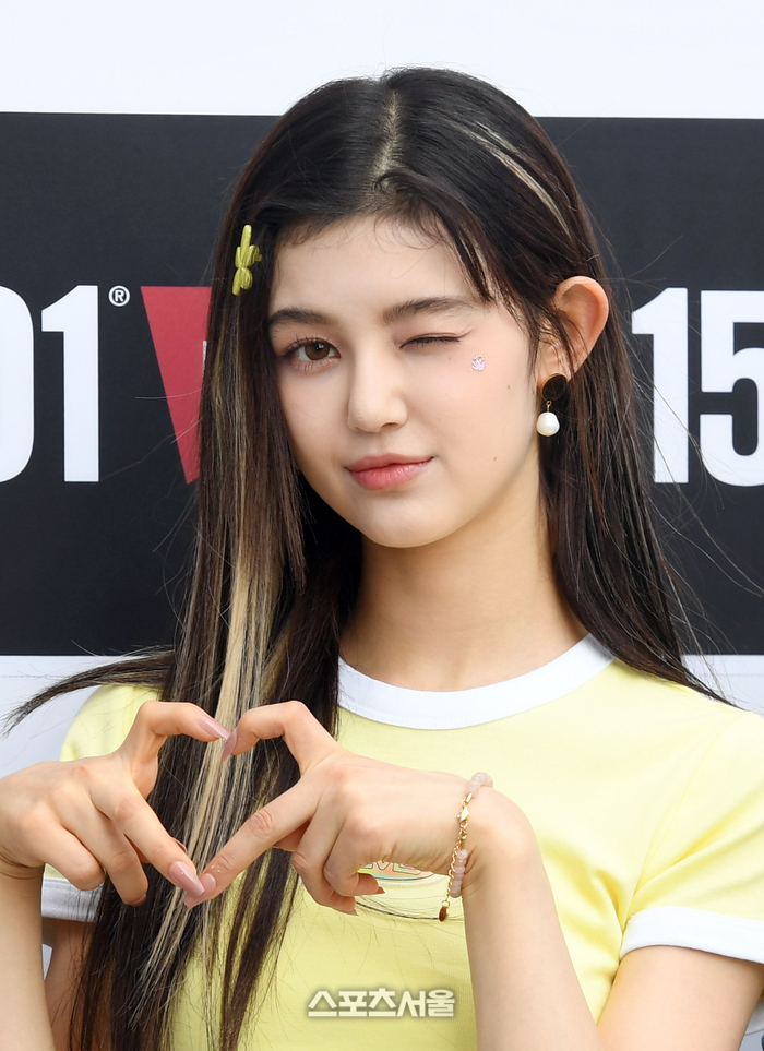 뉴진스 다니엘이 20일 서울 서초구 서울웨이브 아트센터에서 진행된 리바이스 501 데님 탄생 150주년 기념 포토월 행사에서 취재진을 향해 포즈를 취하고 있다. 2023. 5. 20.