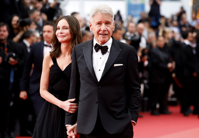 해리슨 포드는 턱시도를 장착하고 아내 손을 잡은 채 레드 카펫을 밟았다.
