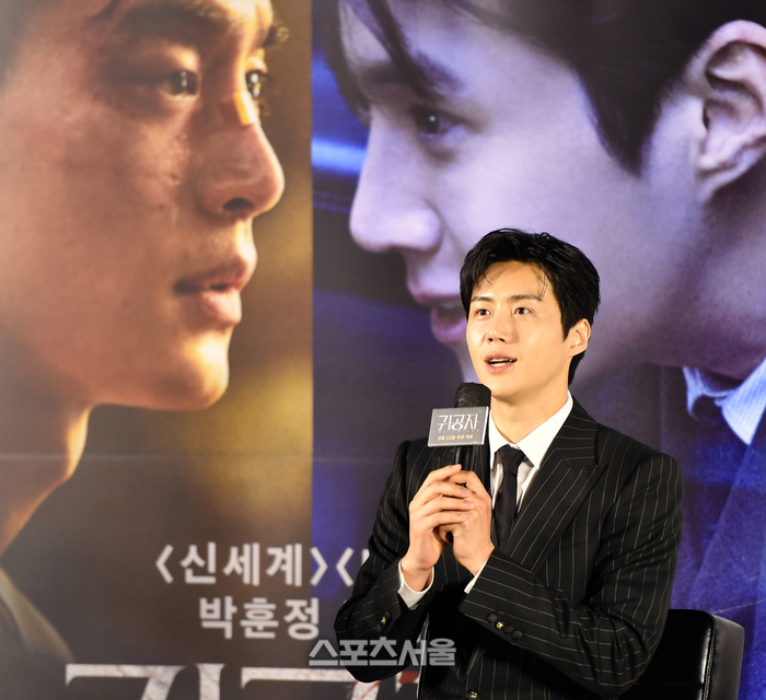 배우 김선호가 22일 건대입구 롯데시네마에서 열린 영화 귀공자(추격) 제작보고회 무대에 올라 포토타임을 갖고 있다. 독특한 한국 르와르액션을 선보여 화제가 된‘신세계’ ‘마녀’를 연출한 박훈정 감독이 메가폰을 잡은 ‘귀공자’는 6월 21일 개봉예정이다. 2023.05.22.