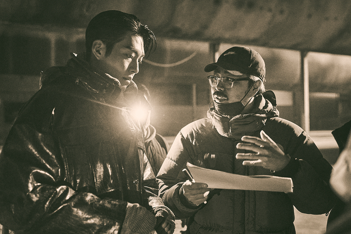 ‘택배기사’의 세계는 빛이 제대로 들지 않아 온기가 전혀 느껴지지 않는 공간이다. 작품의 절반 이상은 출연진이 검은 마스크를 쓰고 있다. 코로나19 팬데믹이 한창이던 시절, 영화 ‘마스터’를 함께 한 조의석 감독에게 ‘택배기사’ 시나리오를 받았던 김우빈은 “우리가 모두 마스크를 쓰고 있던 세상에 살고 있었던 때라 정말 이런 일이 일어날 수 있겠다”는 생각이 들었다고 했다.