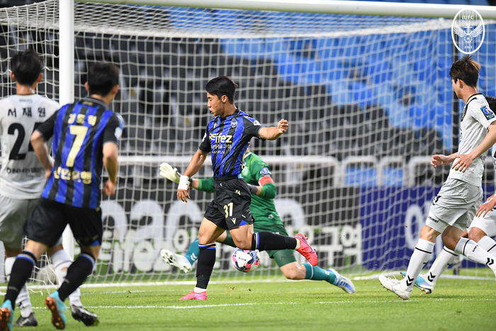 공세를 펼쳤다. 김도혁과 김보섭, 음포쿠를 중심으로 상대 진영을 파고들었다. 전반 17분 김보섭이 드리블 후 박스 안까지 치고 달렸지만 파울이 선언됐다. 2분뒤 김도혁의 돌파 후 박스 안에서 볼을 받은 김보섭의 슛은 골대 위로 살짝 떴다.