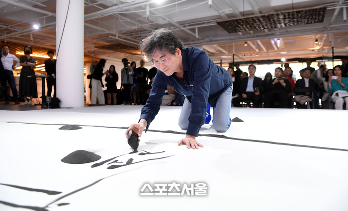 현대미술 김종구 작가가 24일 서울 남산 더 케이팝타워에서 열린 ‘퍼플 큐브 2023 인비테이션’에서 쇳가루를 먹처럼 사용해 작품을 그리는 시연을 하고 있다. ‘쇳가루로 풍경을 그리는 작가’로 잘 알려진 김 작가는 서울대 조소과, 동 대학원 조각과, 영국 첼시 칼리지 아트&디자인과를 졸업하고 활발하게 작품활동을 펼치고 있으며 1990년 대한민국 미술대전 대상, 2002년 김세중 청년조각상 등을 수상한 중견작가다. 2023. 5. 24. 최승섭기자 thunder@sportsseoul.com