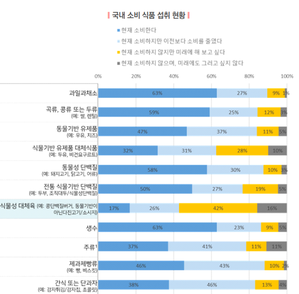 그러나 한국 대체육 시장이 현재처럼 순조롭게 흘러간 것만은 아니다. 코로나19의 시작이었던 2020년 농정포커스 190호에 따르면 당시 국내 식품제조업체 30개 중 대체식품 관련 사업을 추진한 경험이 있는 업체는 11개, 향후 추진할 의향이 있는 식품제조업체는 16개였지만 이 중 2개 업체는 사업을 중단한 것으로 나타났다.