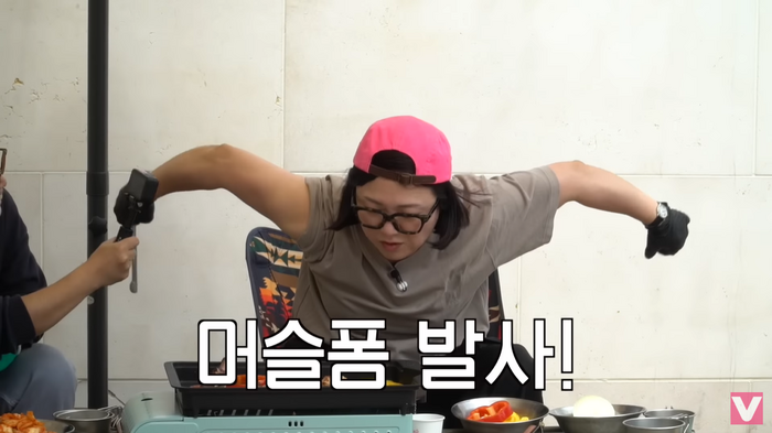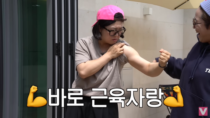 텐트를 완성한 김숙과 송은이는 덱 위에서 고기를 구우며 시간을 보냈다. 송은이는 고기를 굽고 있는 김숙의 팔을 보며 깜짝 놀랐다. “양치승 관장이랑 운동하더니 양치승처럼 됐다”라는 말에 김숙은 머슬 폼을 자랑했다. 김숙은 잔뜩 벌크업 된 모습이었다.