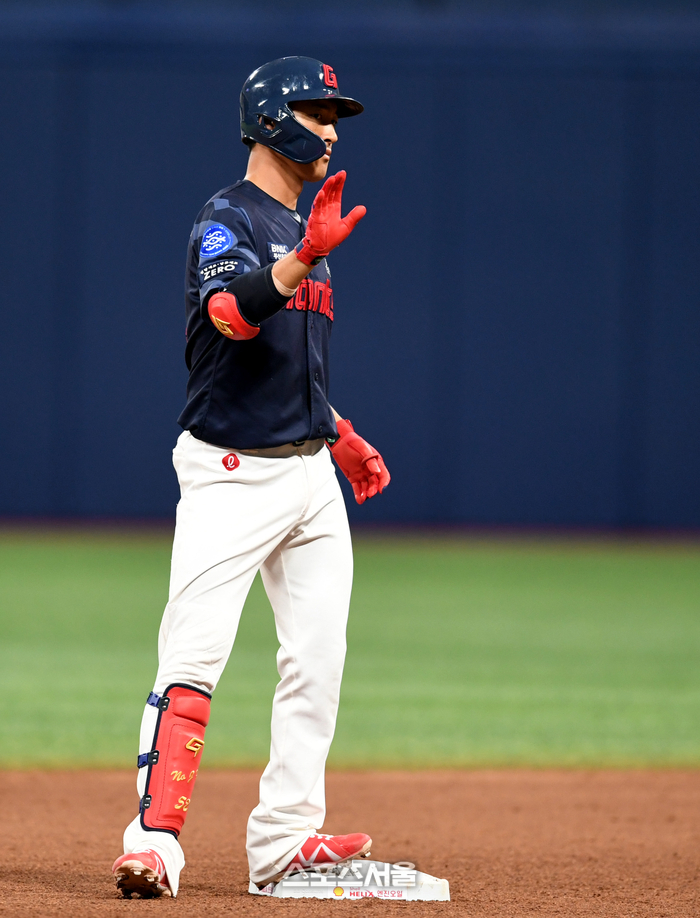 롯데 노진혁이 26일 고척스카이돔에서 열린 2023 KBO리그 키움과 경기 5회초 좌중간 2루타를 친 후 세리머니를 하고 있다. 2023. 5. 26. 고척 | 최승섭기자 thunder@sportsseoul.com