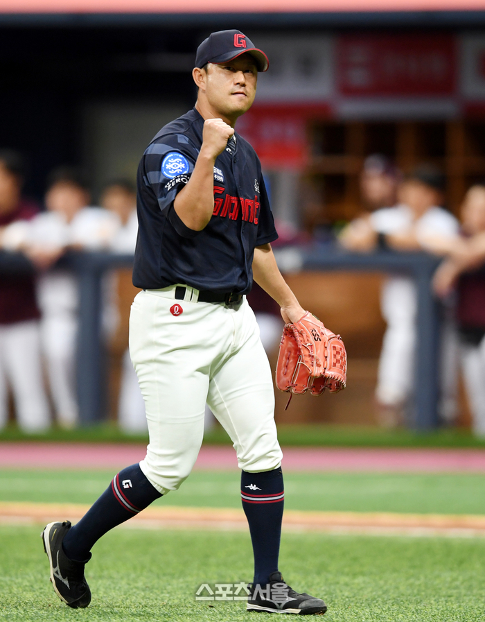 롯데 투수 김상수가 26일 고척스카이돔에서 열린 2023 KBO리그 키움과 경기 7회말 2사3루 상대 임지열을 내야땅볼로 처리한 후 환호하고 있다. 2023. 5. 26. 고척 | 최승섭기자 thunder@sportsseoul.com