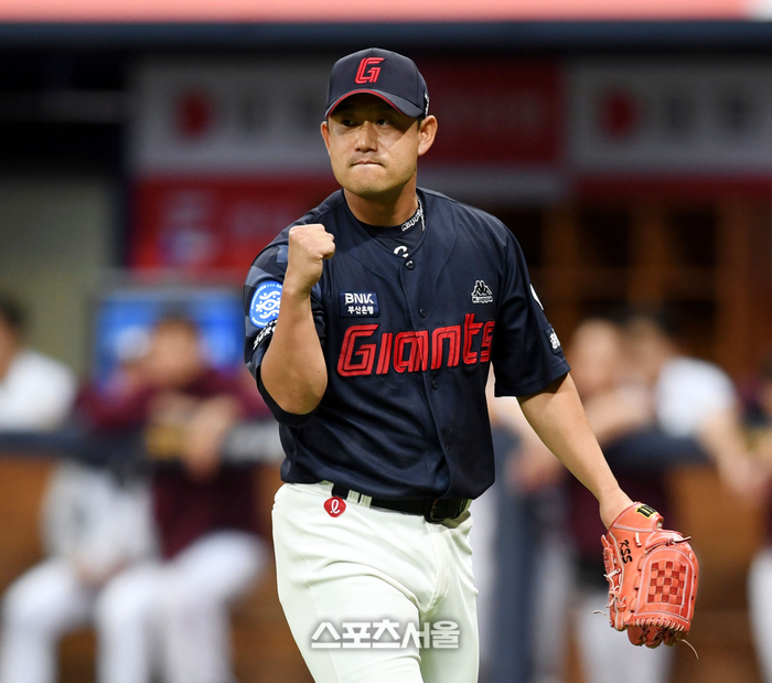 롯데 투수 김상수가 26일 고척스카이돔에서 열린 2023 KBO리그 키움과 경기 7회말 2사3루 상대 임지열을 내야땅볼로 처리한 후 환호하고 있다. 2023. 5. 26. 고척 | 최승섭기자 thunder@sportsseoul.com