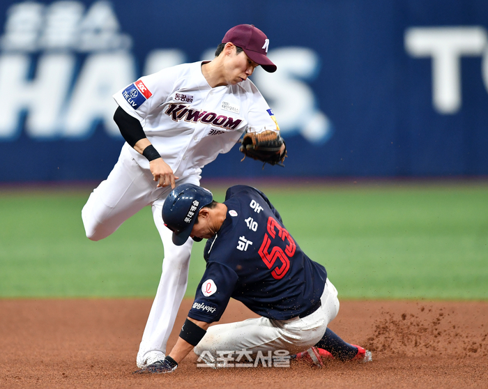 롯데 2번타자 박승욱이 27일 고척스카이돔에서 열린 2023 프로야구 키움히어로즈와 롯데자이언츠의 경기 4회초 선두타자로 나와 안타로 출루한 후 2루도루에 성공하고 있다. 2023.05.27.