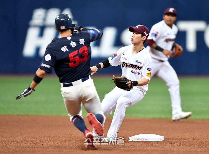 롯데 2번타자 박승욱이 27일 고척스카이돔에서 열린 2023 프로야구 키움히어로즈와 롯데자이언츠의 경기 4회초 선두타자로 나와 안타로 출루한 후 2루도루에 성공하고 있다. 2023.05.27.