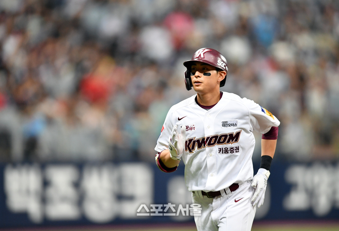 키움 3번타자 이정후가 27일 고척스카이돔에서 열린 2023 프로야구 키움히어로즈와 롯데자이언츠의 경기 4회말 선두타자로 나와 좌익수 플라이로 물러나고 있다. 2023.05.27.