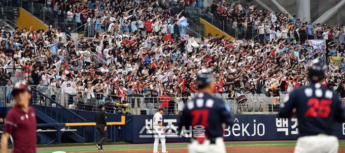 27일 고척스카이돔에서 2023 프로야구 키움히어로즈와 롯데자이언츠의 경기가 열리는 가운데 만원관중이 야구를 즐기고 있다. 3루쪽 롯데팬들의 응원열기가 고척돔을 뜨겁게 달구는듯 하다. 2023.05.27.
