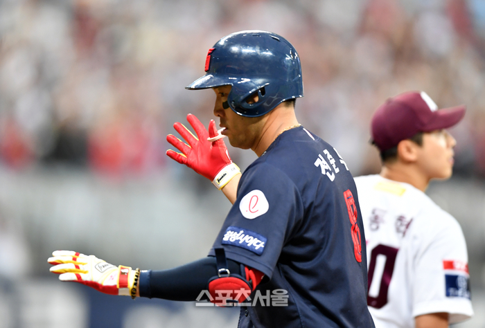 롯데 3번타자 전준우가 27일 고척스카이돔에서 2023 프로야구 키움히어로즈와 롯데자이언츠의 경기 7회초 2사 1,2루에서 1타점 안타로 출루하고 있다. 2023.05.27.