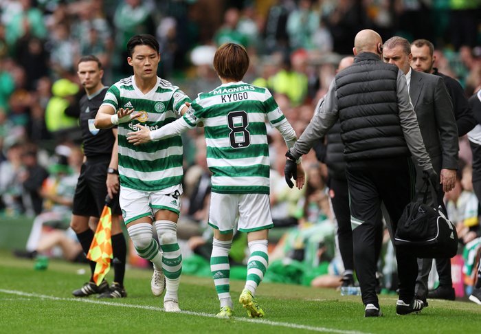 ‘쾌속 적응’이라는 말이 유독 들어맞는다. 스코틀랜드 셀틱의 공격수 오현규(22)가 시즌 마지막 정규리그 경기에서 멀티골을 쏘아 올리며 웃었다. 그는 27일(한국시간) 글래스고에 있는 셀틱 파크에서 끝난 2022~2023시즌 스코틀랜드 프리미어리그(SPL) 최종 38라운드 애버딘과 홈경기에 후반 5분 후루하시 교고 대신 교체로 들어가 두 골을 집어넣으며 팀의 5-0 대승을 이끌었다.