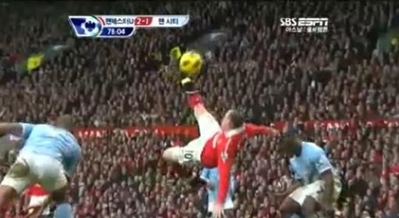 '2010~2011 잉글랜드 프리미어리그' 맨유와 맨시티의 경기에서는 EPL 출범 20주년 기념 어워드 '최고의 골' 부문에서 1위에 오른 웨인 루니의 시저스킥이 나왔다.