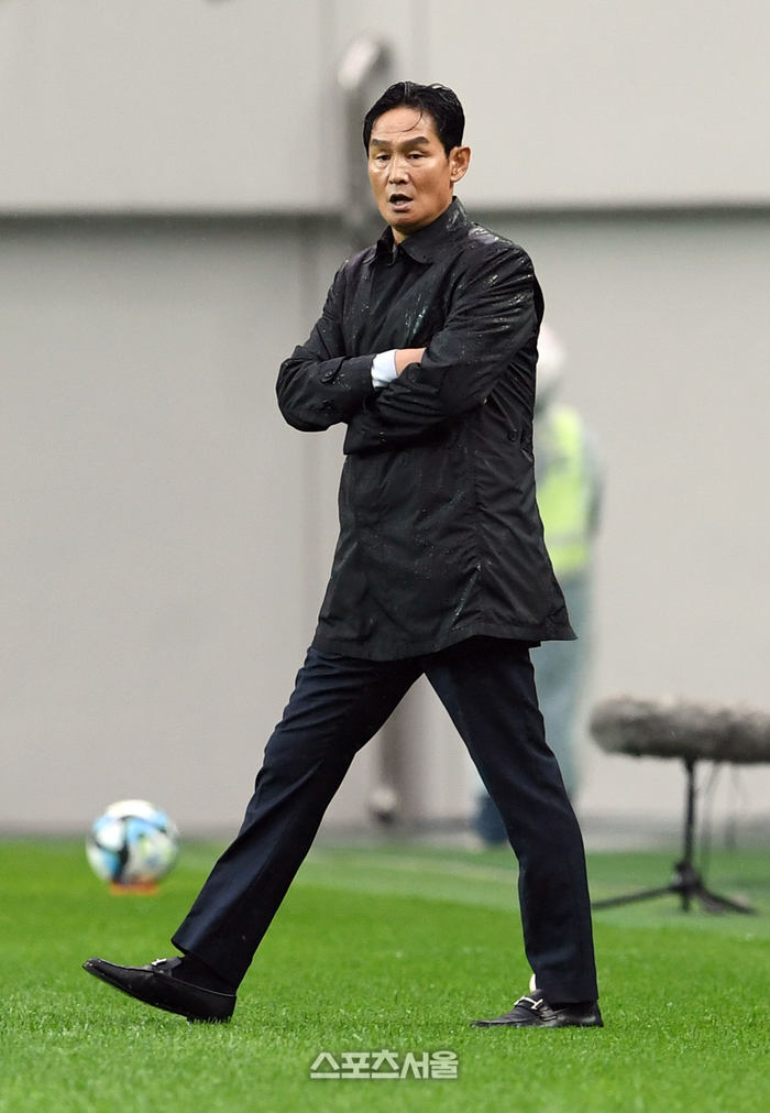 강원FC 최용수 감독이 28일 서울월드컵경기장에서 열린 2023 하나원큐 K리그1 FC서울과 경기에서 선수들의 플레이를 바라보고 있다. 2023. 5. 28.