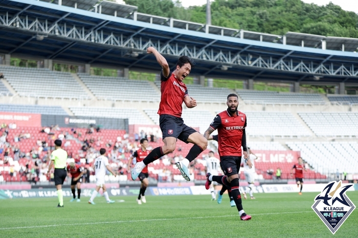 8승1무5패(승점 25)를 기록한 부천은 4위로 올라섰다. 반면 한 경기 덜 치른 김포는 리그 개막 이후 첫 패배(7승5무)를 떠안으면서 승점 26으로 제자리걸음, 3위다. 김포는 주중 K리그1 소속 강원FC와 FA컵 16강전에서 2-3으로 패한 적이 있다. 공식전으로 따지면 2연패다.